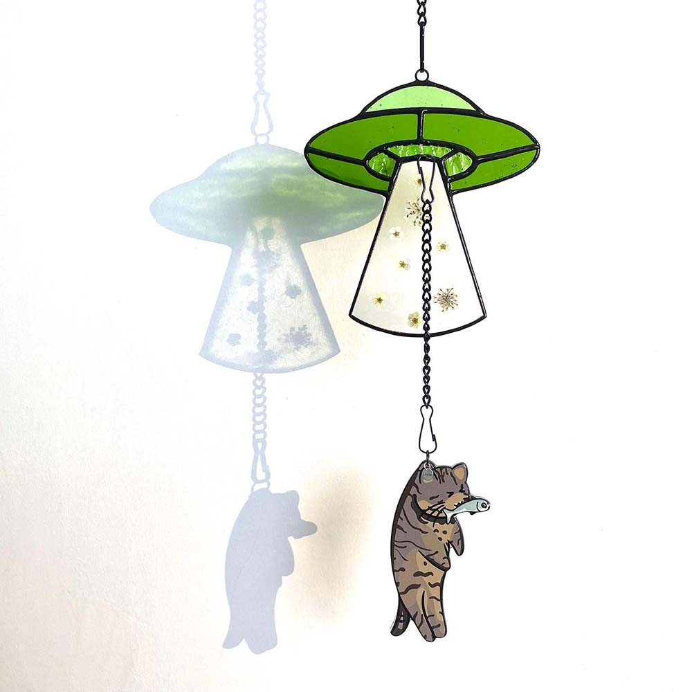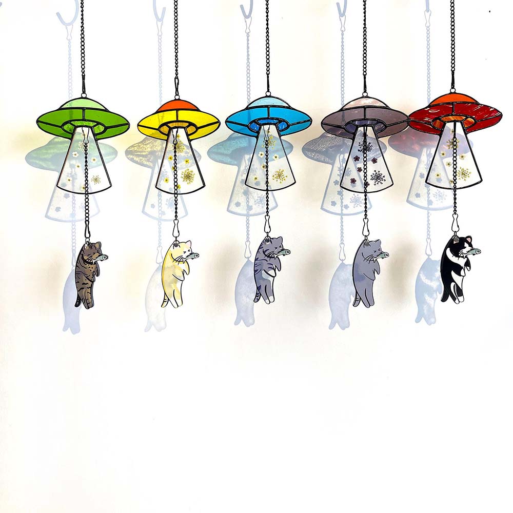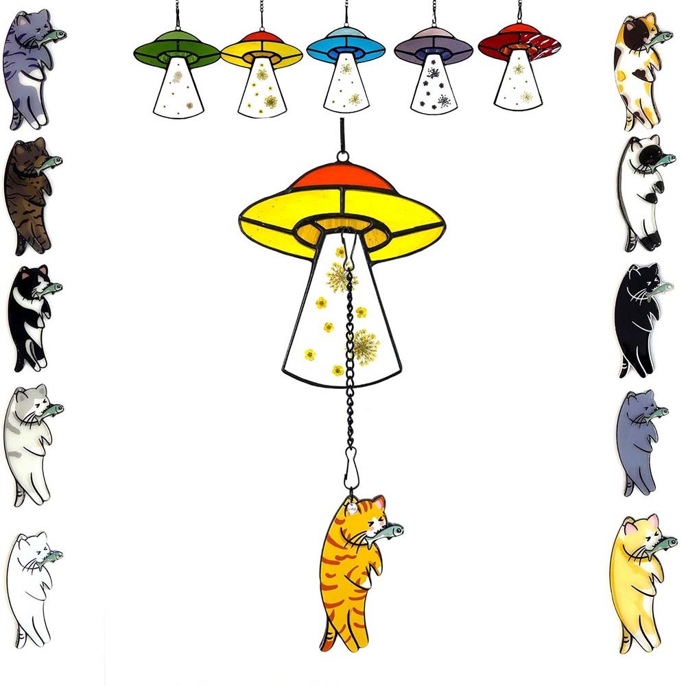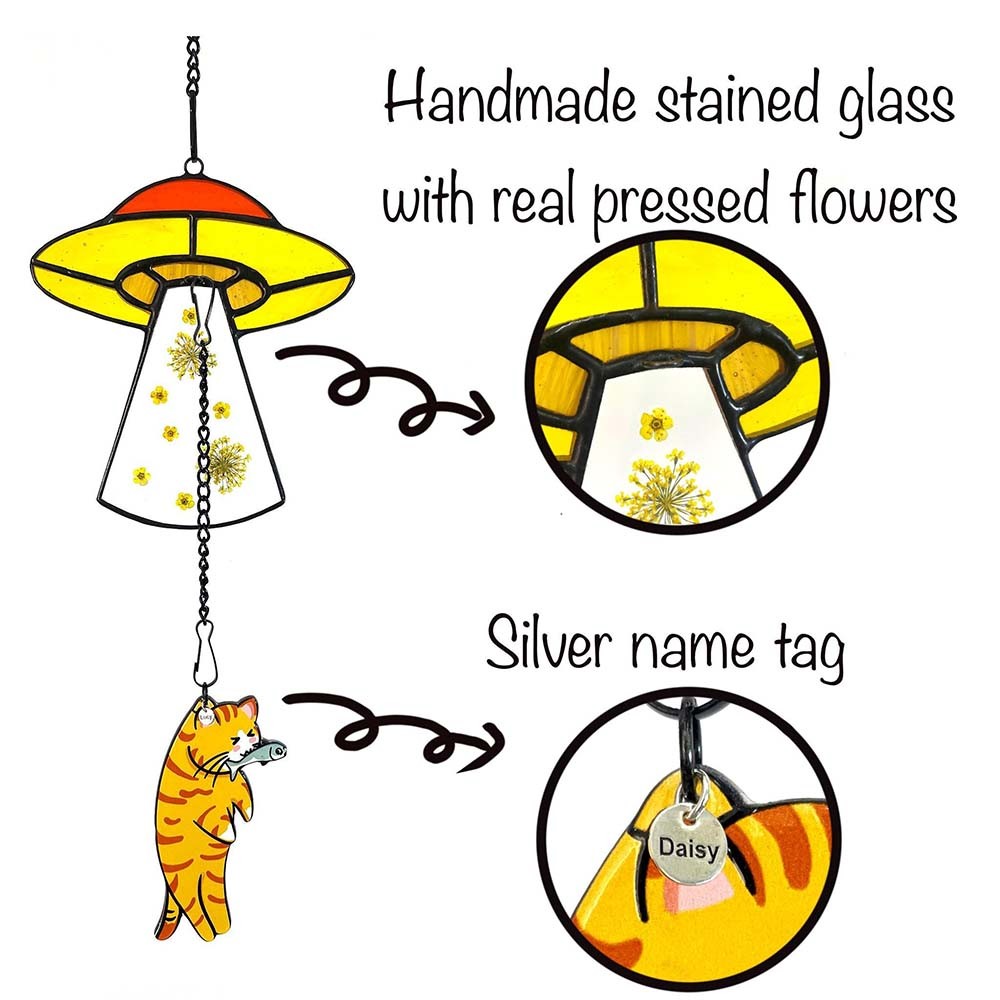 | Style | Custom Pressed Flower Cat UFO Encounter Stained Glass Suncatcher |