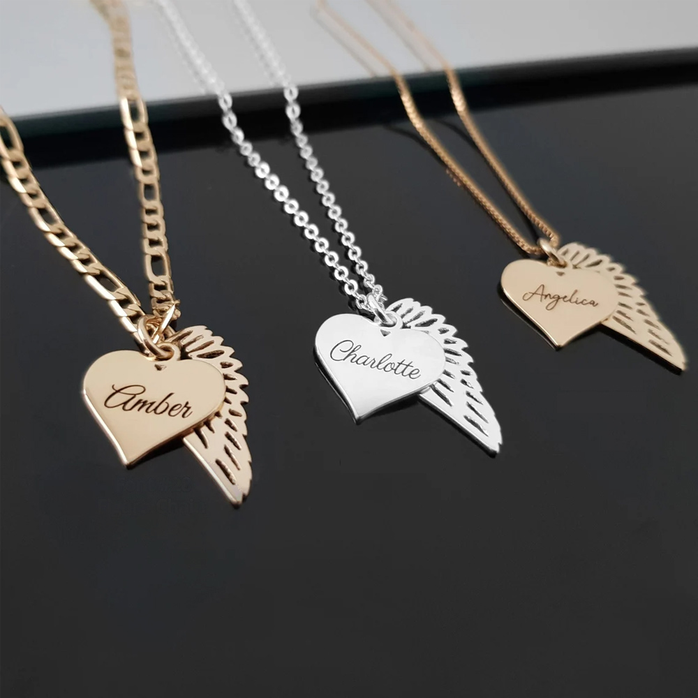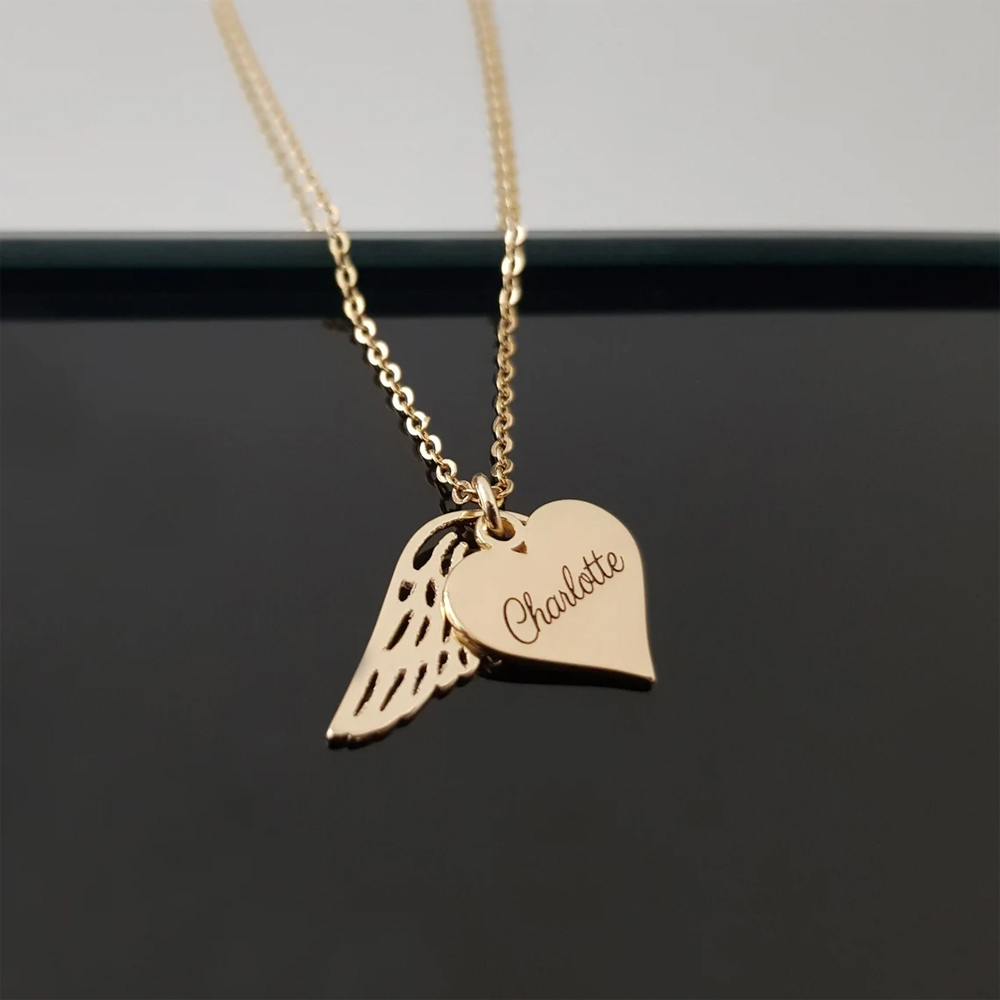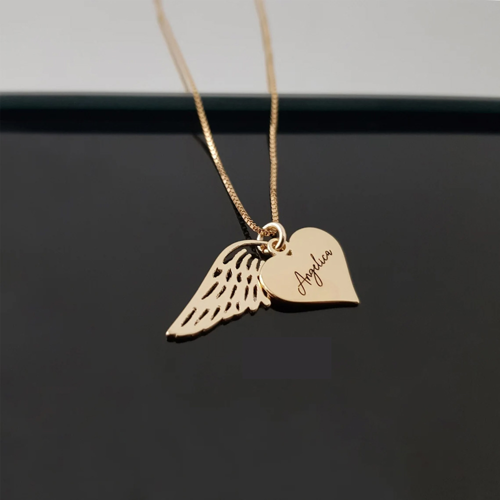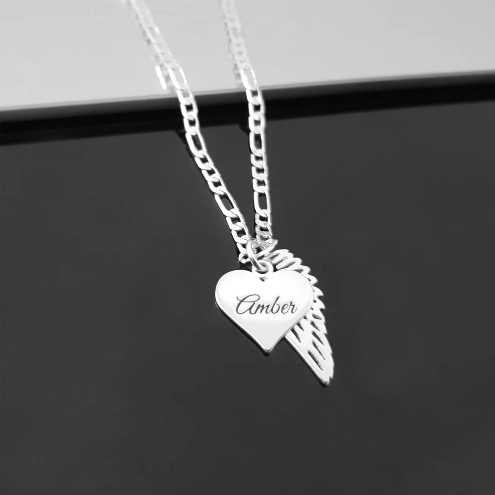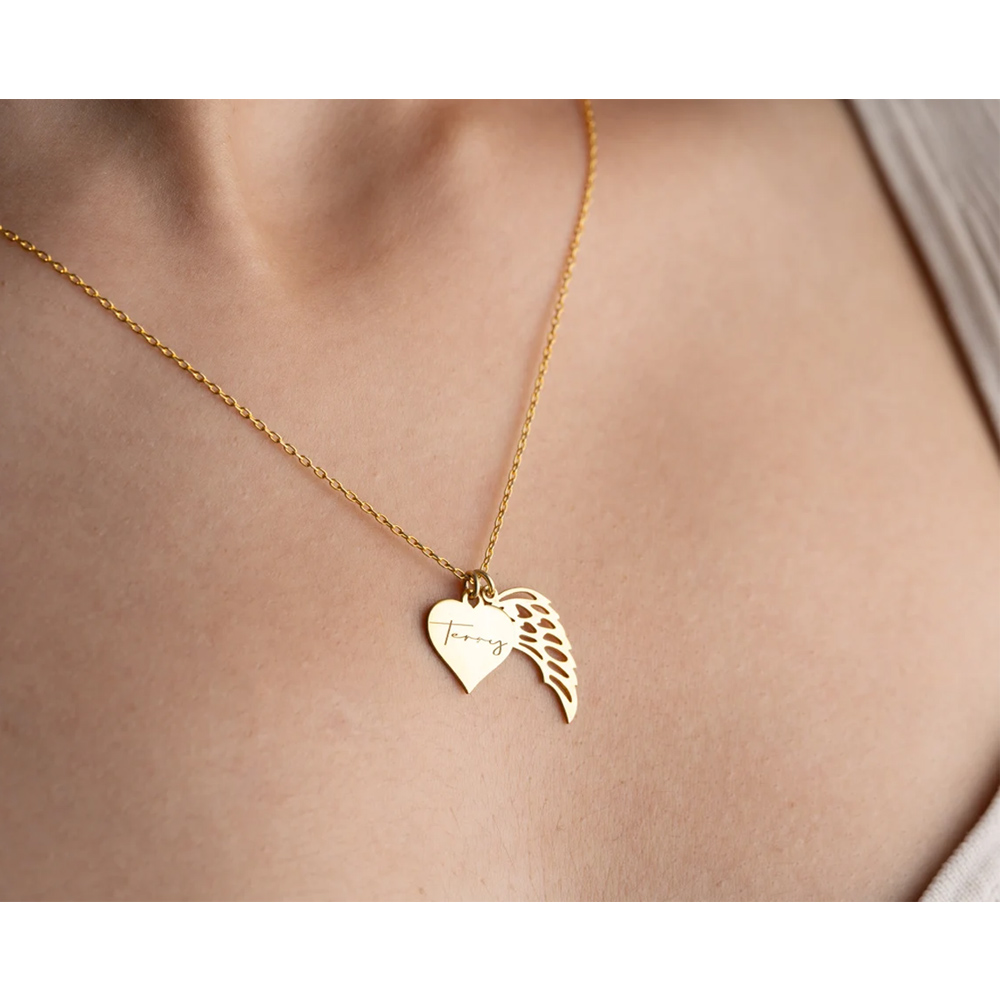 Honor the precious bond between you and your loved one with this stunning heart necklace. This necklace features a delicate heart pendant adorned with angel wings.